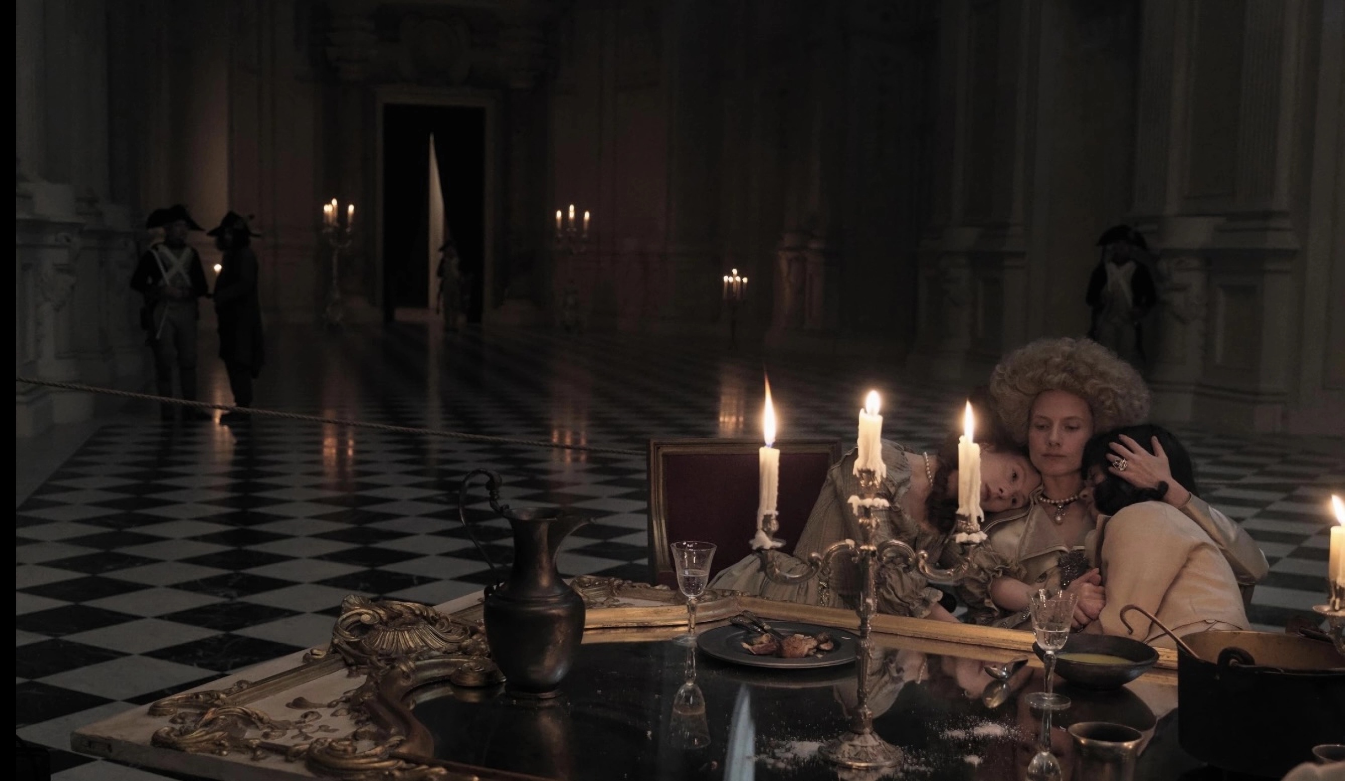 A nejde ani tak o to, že bychom postavy od základu nechápali. Nanejvýš nepříjemná situace vytržení z obvyklého prostředí a vhození do nejistoty a strachu o život, potažmo pocity z toho vyplývající, jsou na lidské úrovni naprosto srozumitelné. Divácké naladění na úzkost prožívanou králem a královnou, na které vyprávění převážně upírá pozornost, je navíc výrazně zesíleno obrazovým pojetím. Zrnitý vizuální styl a poměrně matná barevná paleta působivě zachycují nehostinnost vhodně vybraných interiérů ztvárňujících komnaty Templu s jejich tmavými a zašlými stěnami. Stejný díl úspěchu na budování atmosféry zoufalství pak má i scénářem vhodně dávkované, postupně čím dál zásadnější narušování komfortu a důstojnosti královské rodiny ze strany těch, kteří je hlídají.